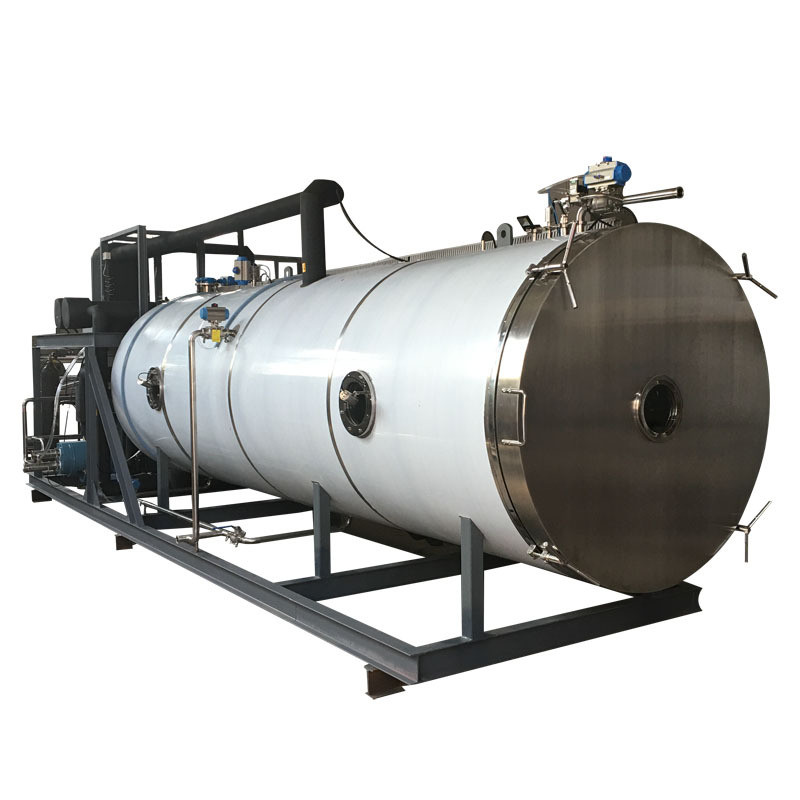 The whole process is to keep freshness of food and extend shelf life. The equipment has the functions of programming on PLC, display, storage, printing of operation data and lyophilize curve. It also comes with measuring and display of product, condensation capturer, heat conducting fluid, and vacuum state of lyophilizing cabinet or vapor condenser.